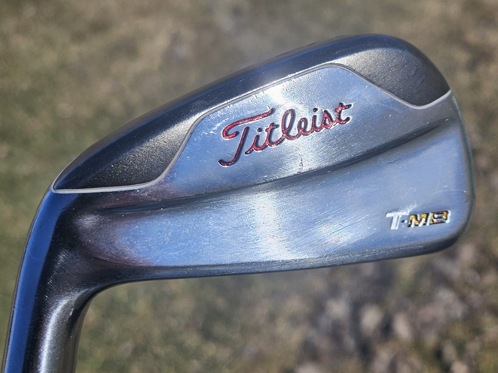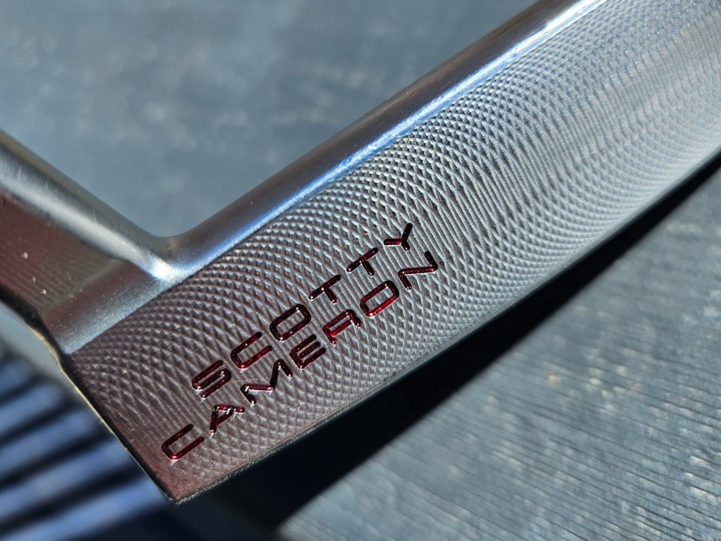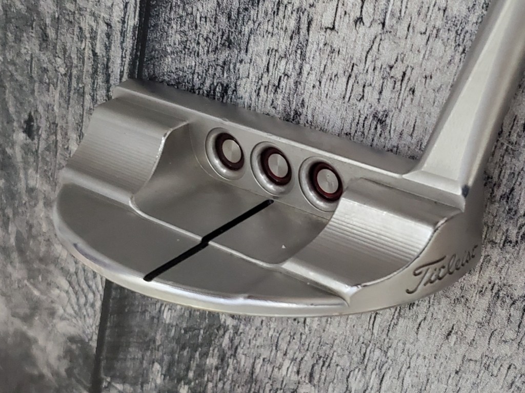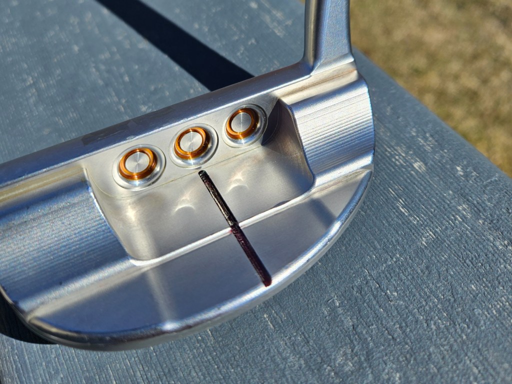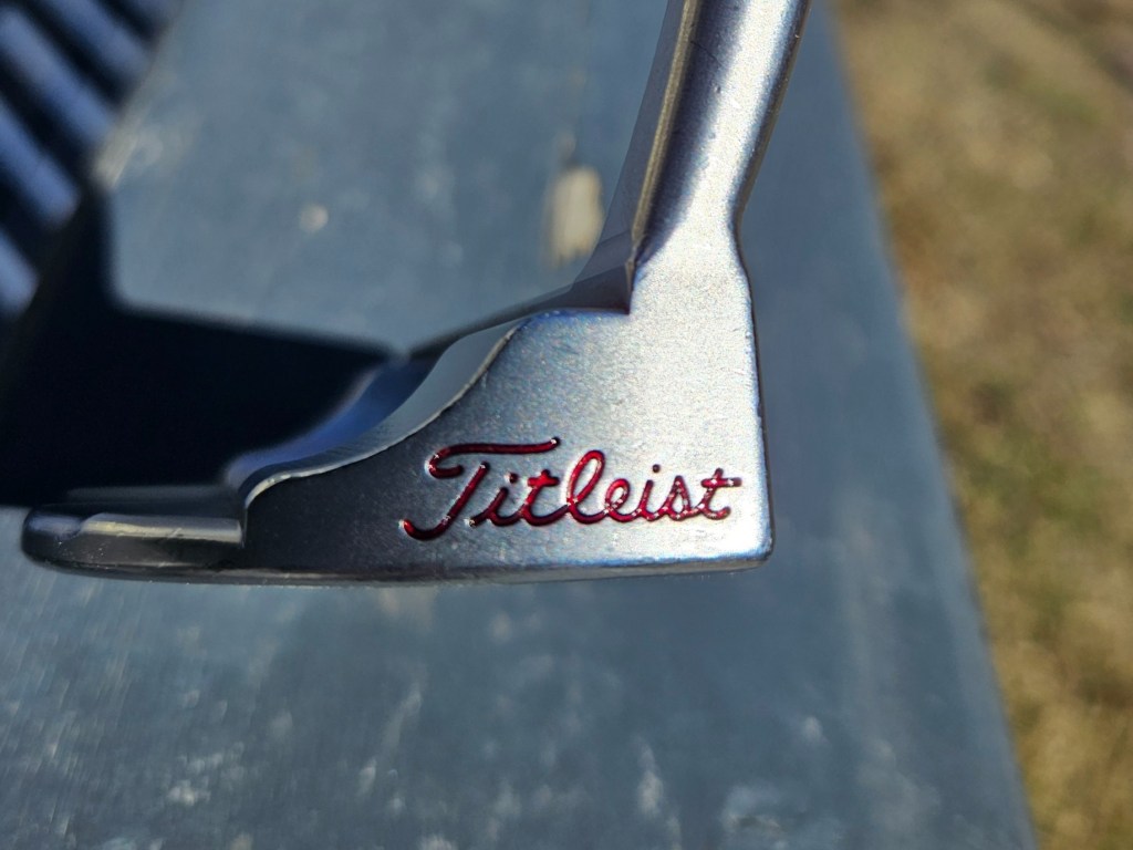After painting up my putter, I noticed that I used too much of my translucent paint and the topline just ended up looking black (I am currently redoing the topline after taking this picture). As you can see in the “T” up above on my driving iron, I used a little too much there, and it doesn’t look quite as nice as the rest of the scripting. So, if you’re using transparent paints, make sure you’re balancing your coverage and the thickness of the paint.