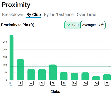 My ShotScope watch gives me a bit of an idea of what my dispersion looks like with each club but, as the chart says, it’s measuring my proximity to the pin. And I don’t always aim for the pin.